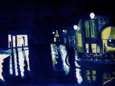 Brugge is such an old quaint city with cobblestone roads, silver glinted streetlights, and cafe chairs leaned against the restaurants at midnight. I used acrylics to get the feel of the late night seen during this trip.