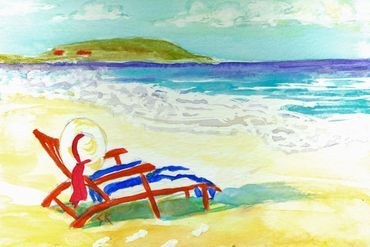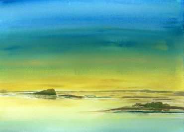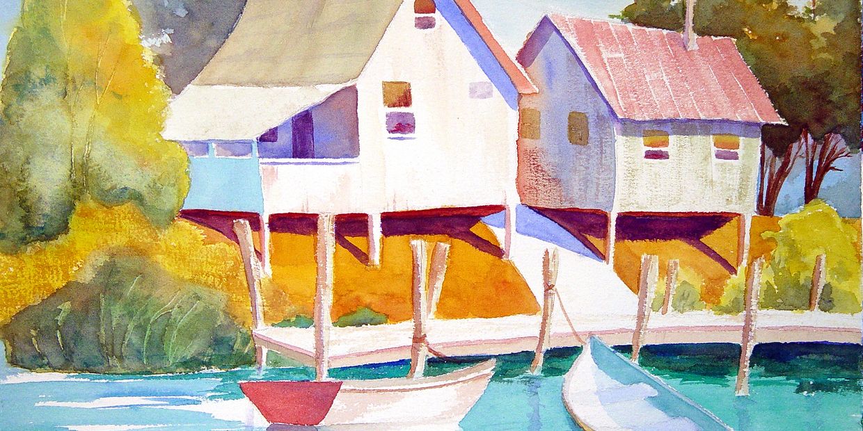 Watercolor is the best for exhibiting a summer feel with boats, reflecting houses and spring trees.